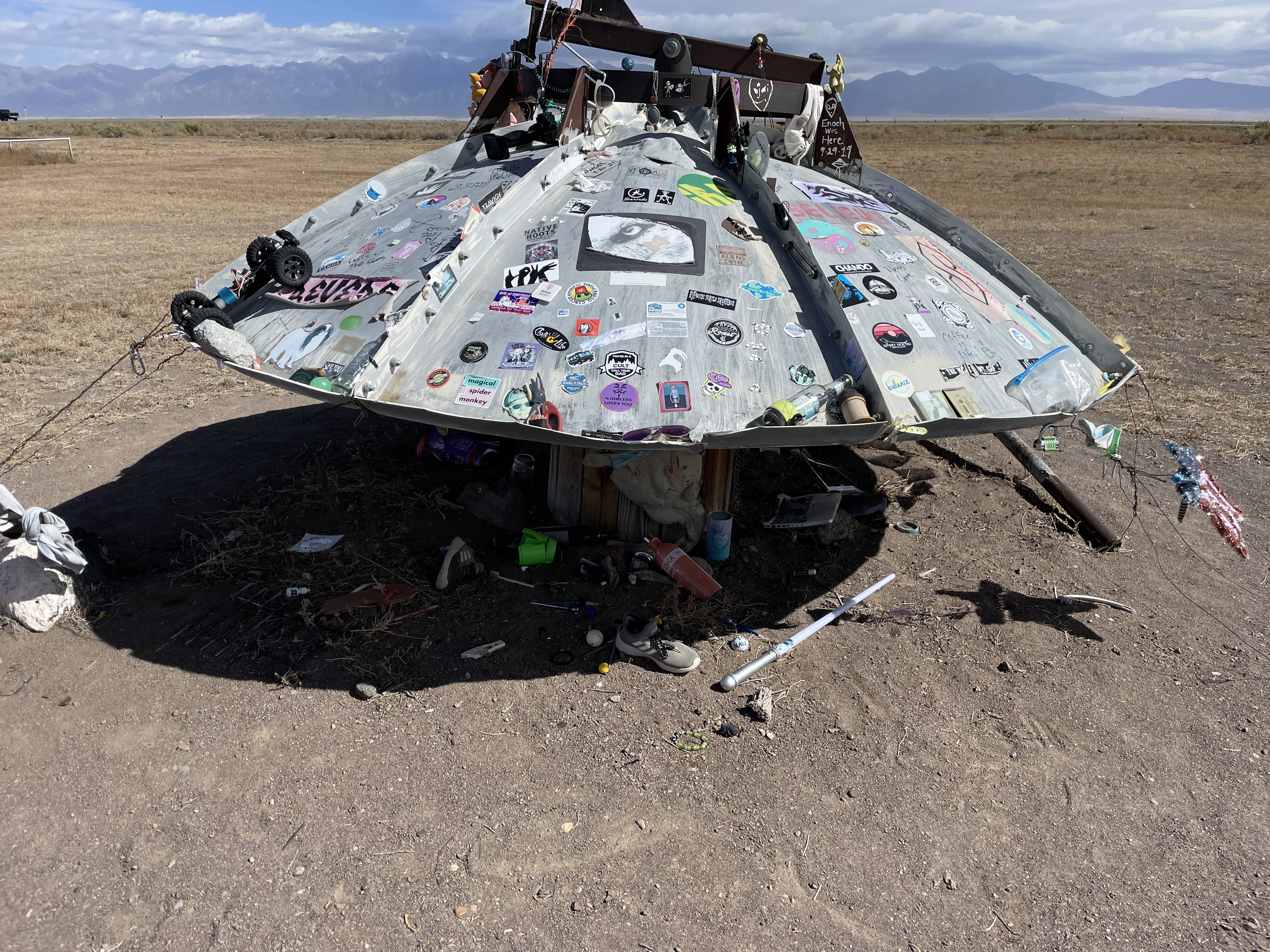 There were yet-more manmade structures to see– this one, a farm that had long ceased to exist. With barbed wire fences that went nowhere, and a strange assortment of thick, broken pottery vessels, as well as the remains of a staircase poured in concrete that Mac checked out. It was an eerie selection of goods from a homesteader who had a ranch that long ago faded into dust.
